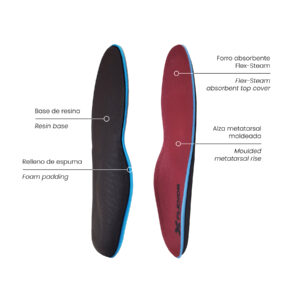 The base is made up of structuring materials with a molded metatarsal for pressure distribution. Non-slip finish.